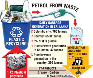 Petrol prices have been rising high every day and it is one of the biggest problems for everyone in country. This amazing new invention can be a solution for that problem. The new fuel is expected to cost Rs.30 to Rs.40 per liter. Not only will the petrol price issue be solved, but also the huge amounts of plastic waste in the country will be used for something productive.